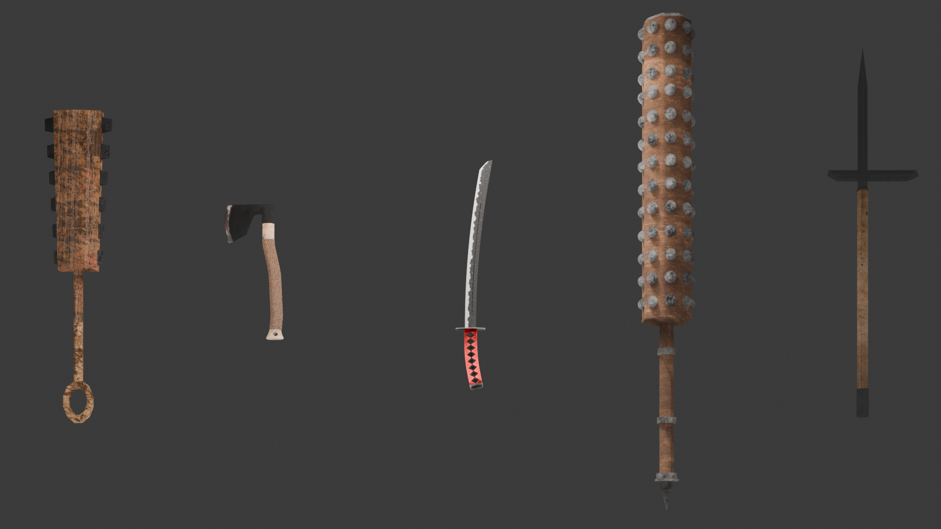 Download the files for the weapons, in each weapon file, there is an FBX file and its textures. To use them, open a program, preferably Blender and import the FBX file. Once the weapon is visible in Blender highlight the weapon and click Material Properties and click on Base Color and locate Image texture on Texture. Import all of the texture assets that come with the weapons and add them to the corresponding areas like metallic, roughness, etc.